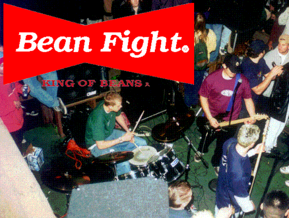 Bean Fight began back in November of 1995. Rhythm guitarist Rich "Bean Bag" Silva was studying at California State University, Chico to earn his BS in underwater finger painting. Being that Rich is an Orange County native, he really despised having to hear the crap-hippie music that is continuously played throughout Chico State. Rich channeled his anger into forming his own punk band, with the hopes of one day running all of the other bands out of town (or at least to just get chicks).